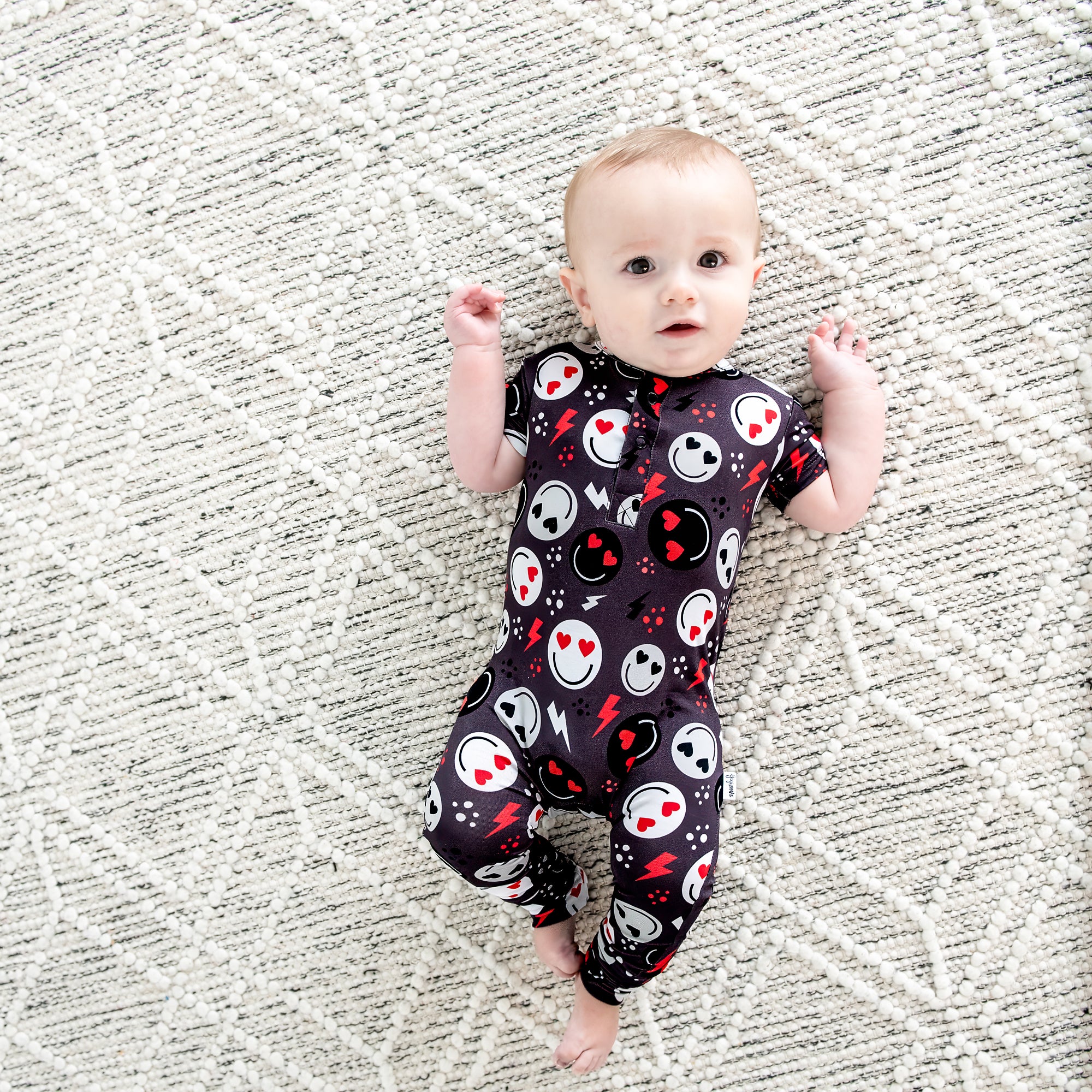 Wash instructions : wash on cold and lay flat or hang to dry. Wash instructions are screenprinted into the neck area of the romper.